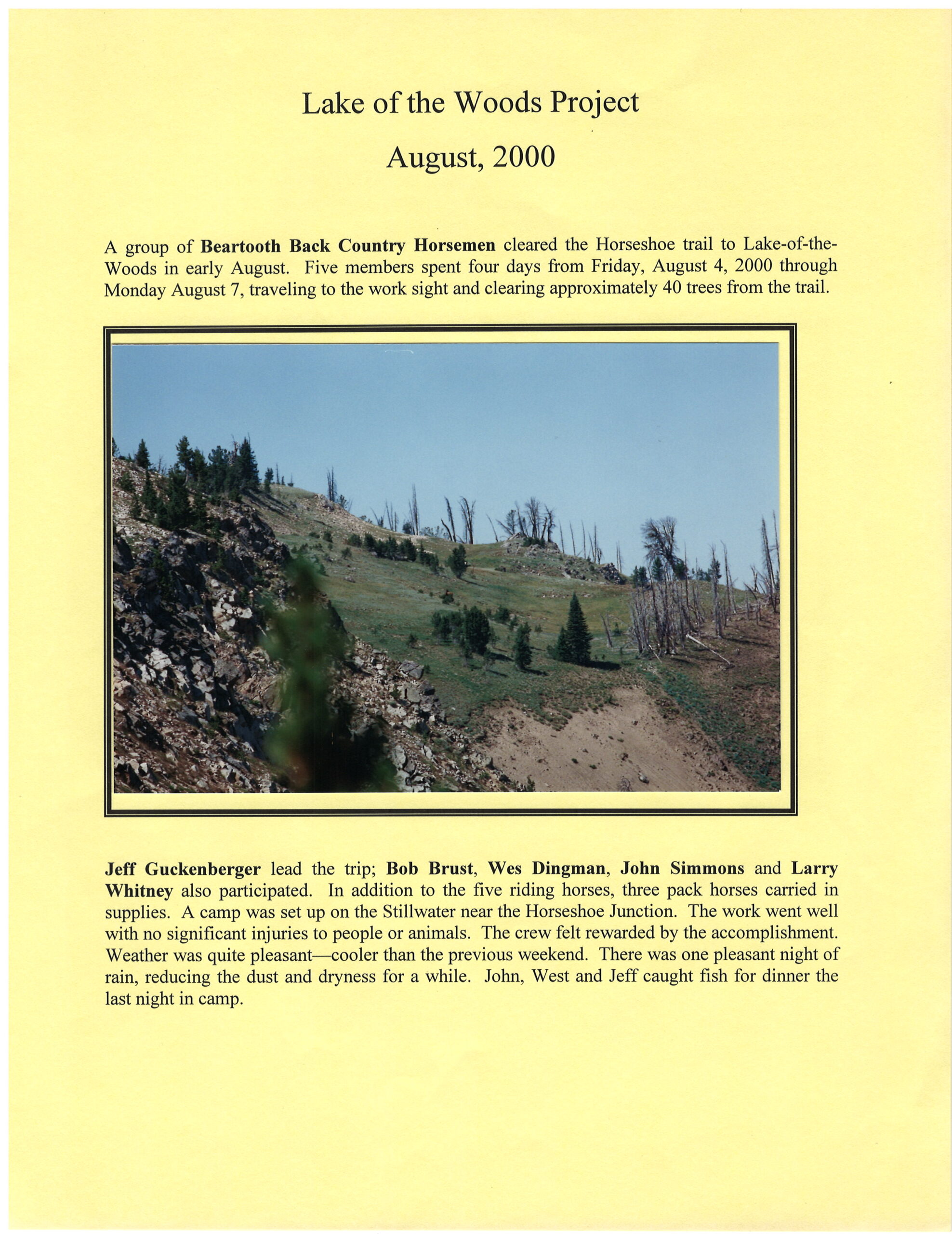 Lake of the Woods Project | August, 2000