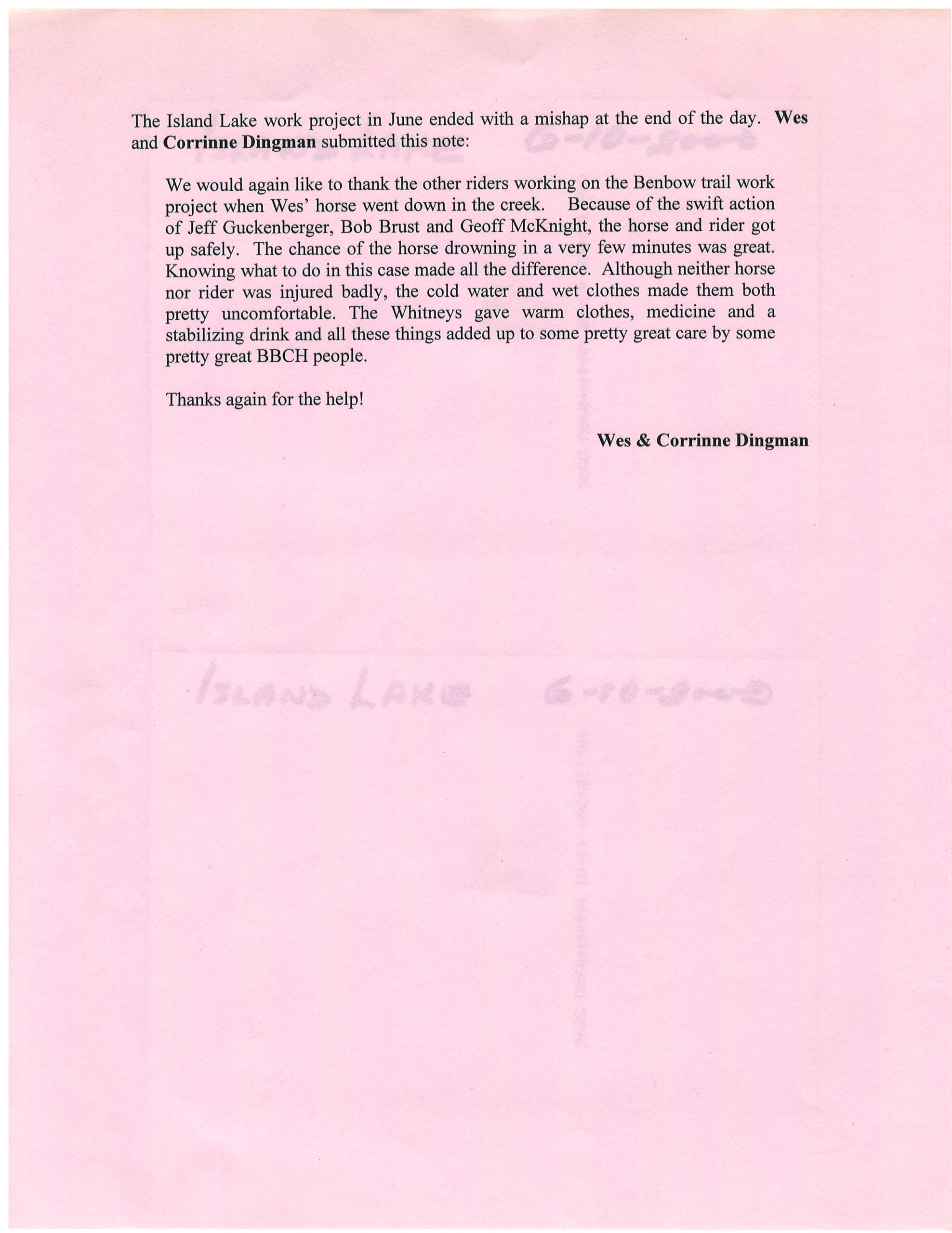 Island Lake Work Project | June 10, 2000