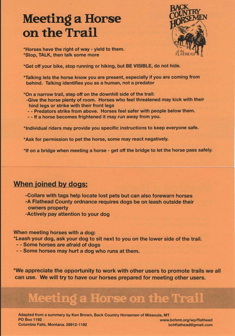 BACK COUNTRY HORSEMEN of the FLATHEAD is a service organization formed in 1973.