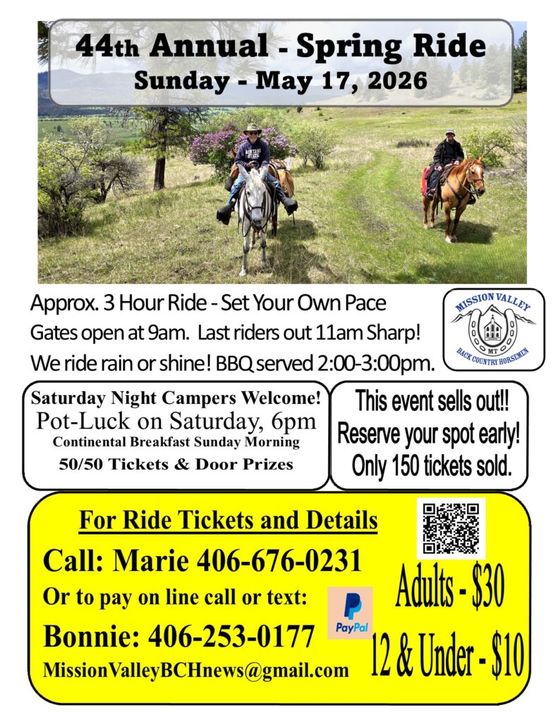 Bring your horse and enjoy a well-marked up to 3-hour ride. Your ride will include views of Flathead Lake and possibly Lake Mary Ronan. The trail will wind through private property. Expect all aspects of terrain, hills up, down and side, water crossings, open meadows, and heavily treed forests. We recommend having your animal shod for this ride.